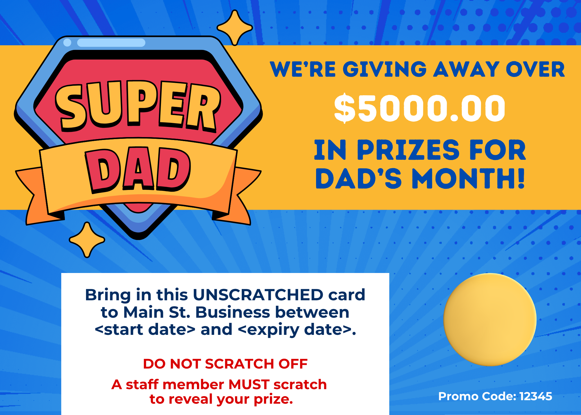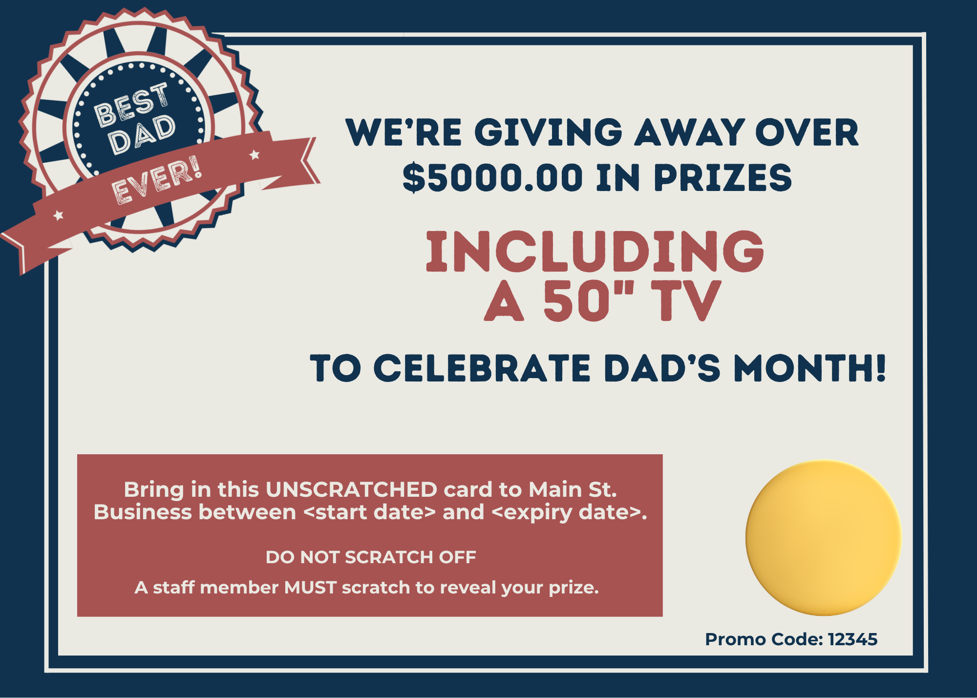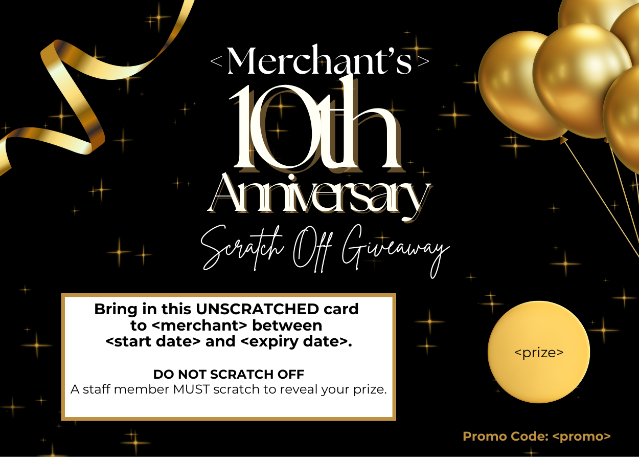 This version includes a variety of prizes that customers can scratch to reveal. The catch? They can’t scratch it themselves—they have to bring the UNSCRATCHED postcard back to your business to reveal and redeem their prize. That curiosity is what gets them in the door!